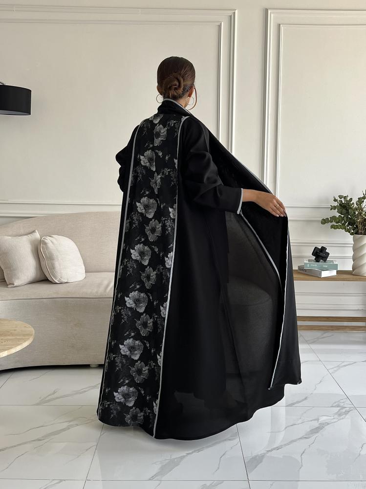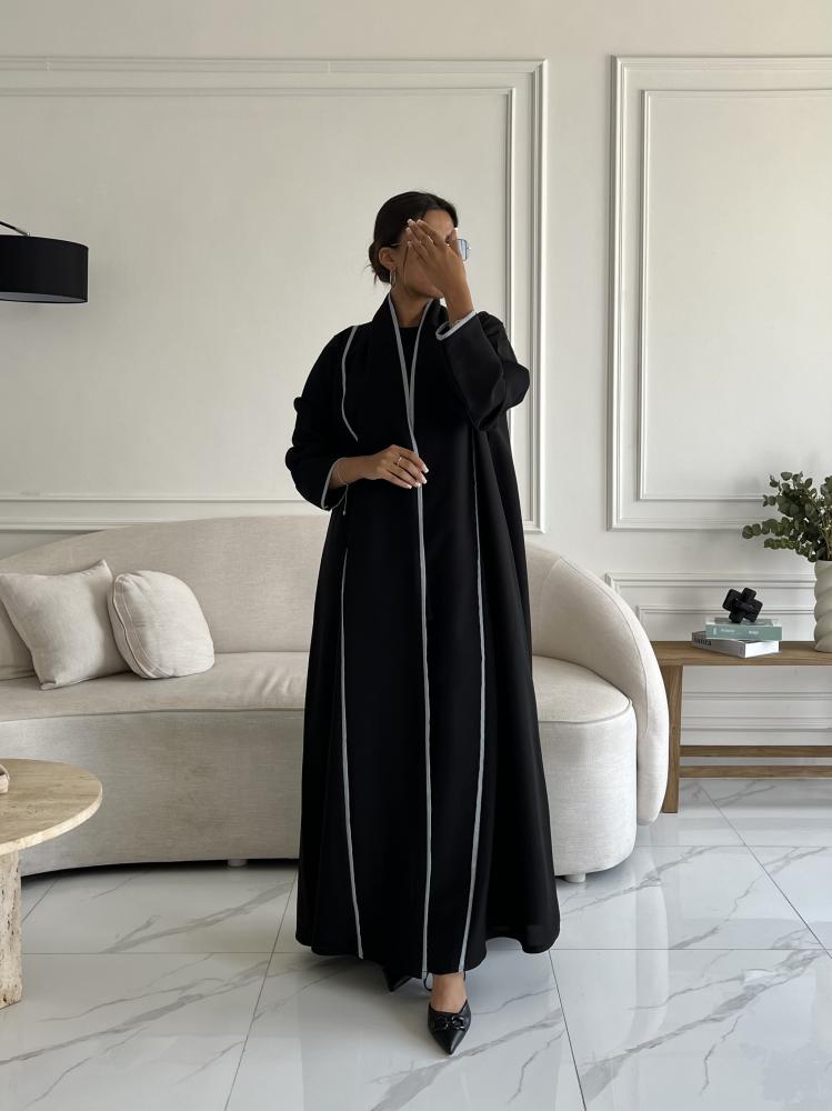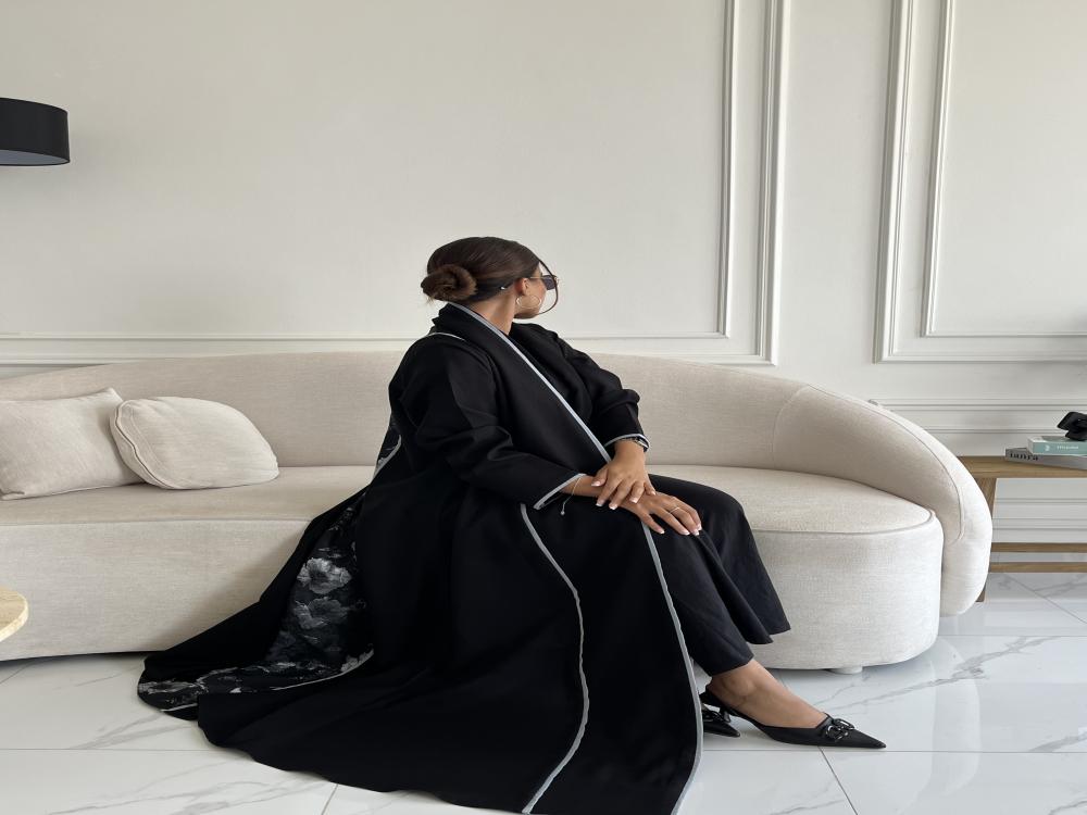 لو كنتِ تدورين على عباية تجمع بين الراحة والفخامة، عبايه بقصه كلوش هي خيارك المثالي. تصميمها واسع وانسيابي يعطيك شعور بالراحة طول اليوم، والتطريز الخلفي باللون الرمادي يضفي لمسة هدوء وأناقة ناعمة تميزك عن غيرك.